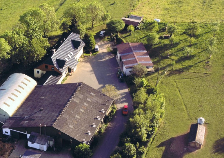 Unser ca. 56 Hektar großer EU-zertifizierter Bio-Betrieb beherbergt zahlreiche Michkühe, Jungrinder und Kälber. Als Acker- und Grünlandbetrieb (allein 7 Hektar Naturschutzwiesen) stellen wir das Futter für alle Tiere selbst her.