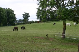Täglicher Weidegang -so wie es die Witterung zulässt- erfolgt nach Wallachen und Stuten getrennt auf 7 Hektar Naturschutzwiesen mit Selbsttränken.