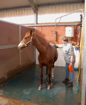 Im Stalltrakt steht eine Waschbox mit warmem Wasser und ein Solarium mit Münzeinheit zur Verfügung.